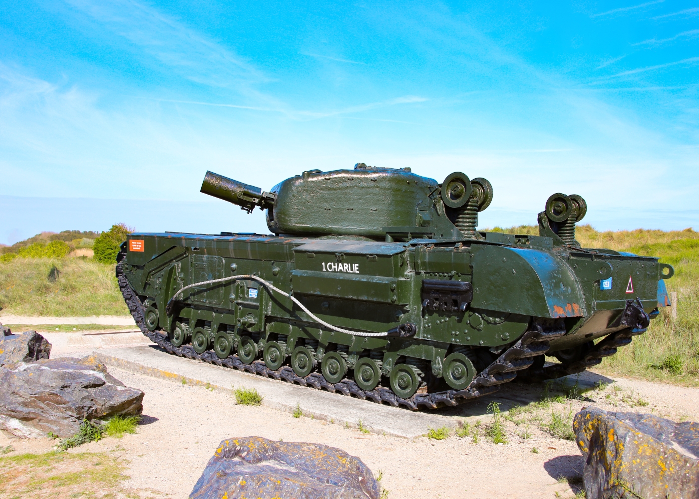 After 40 km, the first stop is Sainte-Mére-Eglise. This place is well known for the American paratrooper who hung on the church tower here. In the middle of the town you pass Sainte-Mère-Eglise Liberation Monument. A little further on in the Airborne Museum, it is explained why the paratroopers were dropped in this area and how it ended. After the stop at Sainte-Mére-Eglise you drive further inland into Normandy. The route goes through the "pocket of Falaise" where German troops were trapped. Yet a large part of these troops could still escape.