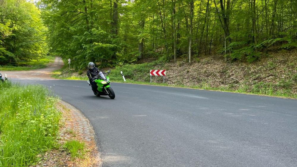 The route starts with a narrow road with lots of curves up through the countryside. Via the towns of Großostheim and Groß-Umstadt, which are literally huge, you drive further into the Odenwald. We pass these as quickly as possible and then sit down for a series of beautiful winding roads. These will take you to one of the top sights: Castle ruin Lindenfels. Here you can find a nice coffee stop, where you can also get a delicious Italian ice cream with a view of the castle when the weather is good.