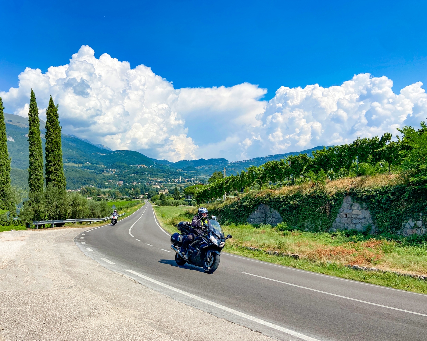Get ready for a beautiful, unknown narrow mountain passes today towards Bassano del Grappa. Also, on this day you can choose between long and short routes that will show you the most beautiful roads of this area. If you were to count the number of curvesyou are going to ride today, you would definitely lose count, as there are so many of them! Besides, some mountain villages such as Arsiero and Valstagna and named mountain passes such as Passo Sommo of 1341 metres and Passo Borcola of 1250 metres, you will pass through a very special village called Zoreri. Here you will find dressed up dolls all around hthe village. A very special sight. The last part of the route you can already see Lake Caldenazzo and that's how you know you're almost back at the hotel.