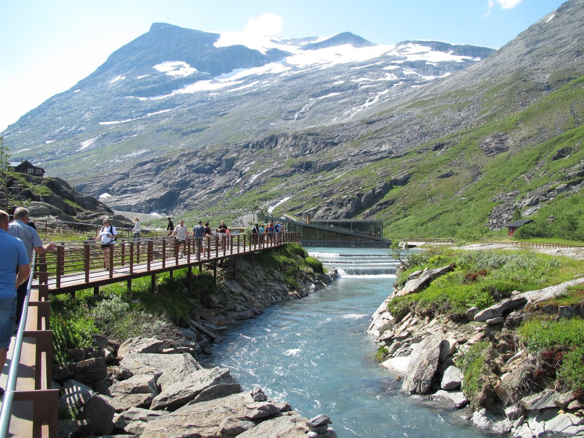 You continue your journey in a southerly direction. You will also pass the famous Trollstigen with 11 hairpin bends. After 170 km, you will see a car park on the left at the Gudbrandsjuvet. Here you can see a fantastic rapids, and on to the next Norwegian highlight: the Geirangerfjord. Also along this road, you will find several of parking places with views that will make you think you're in the middle of a postcard. Via several hairpin bends, you descend this Eagle Road down through Geiranger and climb back up again with beautiful hairpin bends. After this, you have the choice to drive up the Dalsnibba (the route goes up here by default). After all these impressions, it's not over yet. After the Dalsnibba, follow the route to the left and drive around the tunnels via the old road.